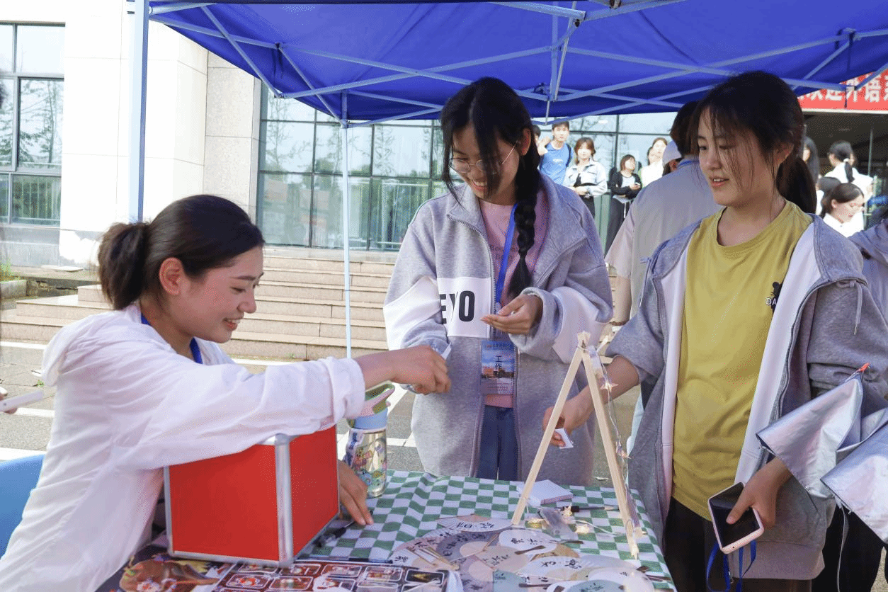 “将非遗大漆和橘子油混合搅匀滴入装水的容器内,再将需要制作的书签或白面扇子浸入水中……”子衿汉风古风工艺品制作摊点前,工作人员正介绍着非遗漆扇的制作方法。“非遗漆扇动手能力较强,受众群体多,能够更广泛地宣传中国传统文化。”商务英语专业2022(1)班的范彦菲表示,作为中国非物质文化遗产,漆扇所具有的独特艺术形式能够吸引更多学子参与到活动中。“使用过的水经过吸油纸擦净,能够继续使用,一定程度上减少资源浪费。”