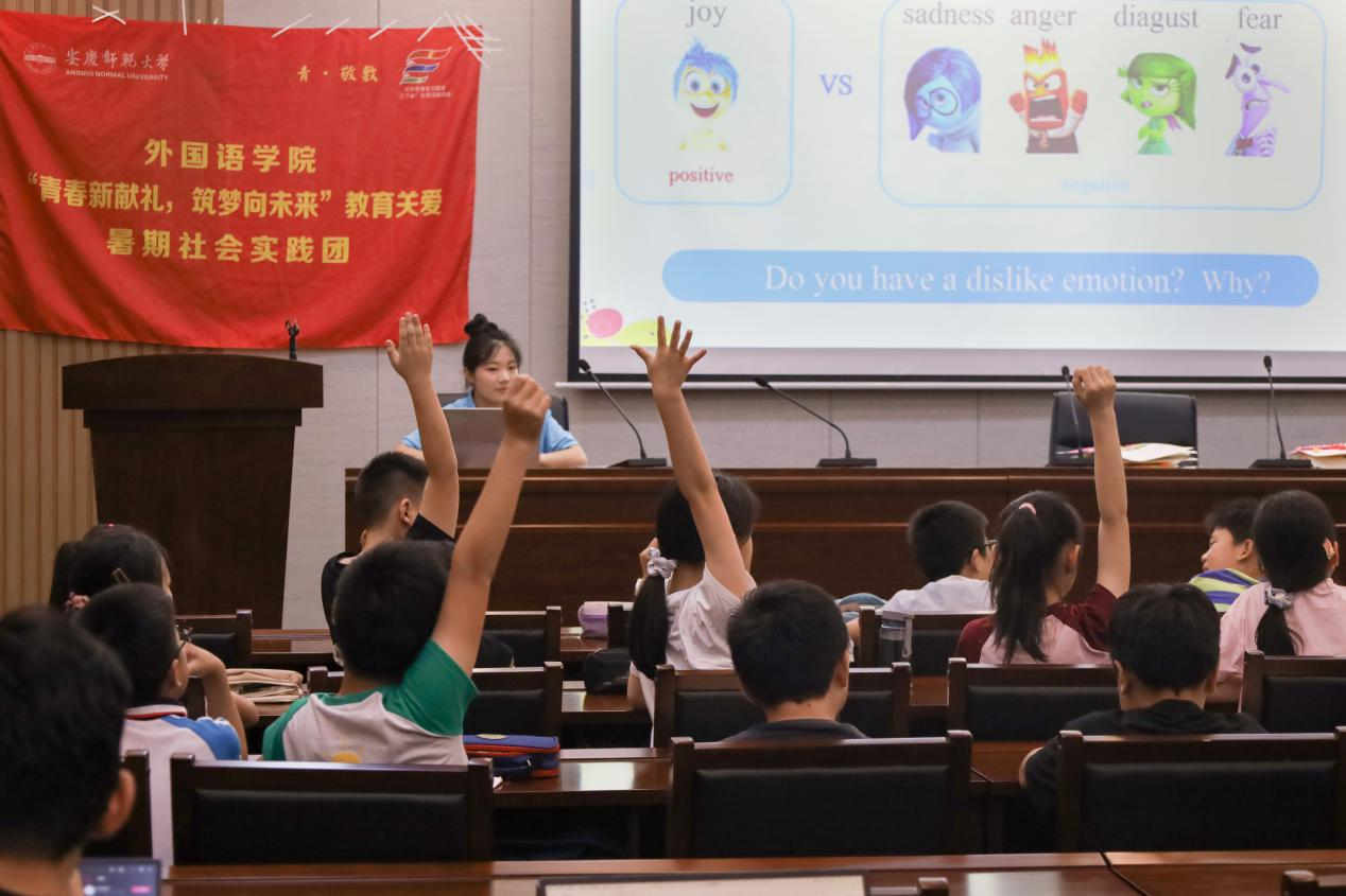 “从地域特点到人文景观、语言文化,我们针对员工年龄段特征设置了特色课程,向他们普及世界文化及语言知识。”实践团成员、外国语言文学类专业2023(7)班的刘璇介绍。近日,威廉希尔williamhill“青春新献礼,筑梦向未来”教育关爱实践团走进怀宁县“青年之家·红领巾”学堂,携手小员工开展“领略文化交融,深悟语言魅力”主题课程,带领他们游世界国家,探文化风情。