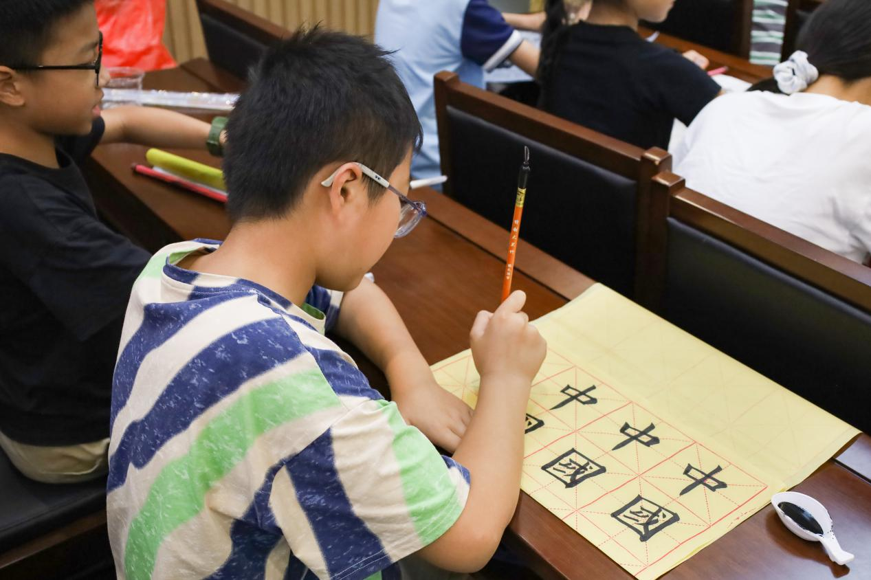 将完成的书法作品交至规定位置后,五年级员工凌宇辰向周围员工分享着他的书法书写技巧。“我学习书法已经三年了,了解很多书写小技巧,现在我的字迹也经常受到老师的表扬。”凌宇辰直呼,听到实践团将带领员工们开展书法课程学习时,自己便开始期待了。“书法让我变得更加细心耐心,我也从中对中国传统文化有了更深入地了解,以后我会一直学习书法。”他说。