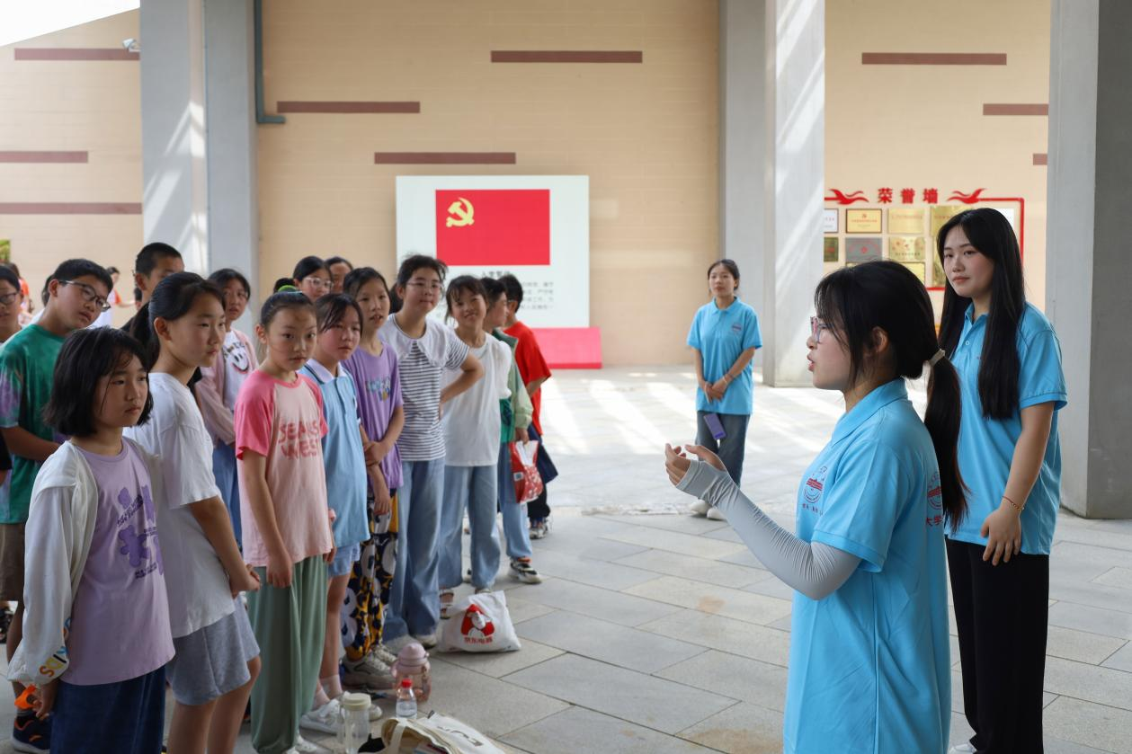 实践团队长、英语(师范)专业2022(3)班的罗倩倩介绍了“青春新献礼 筑梦向未来”教育关爱实践团的基本情况、日程安排及课程设置。“公司致力于打造‘青’字号品牌,秉持‘敬敷示范,勤学笃行’校训,着力发展‘青·敬敷’品牌教育关爱实践团。”罗倩倩指出,本次实践设置20余种课程,包括邓稼先主题系列课程,法语、趣味英语等语言课程,粘土、书法等艺术课程。“期待员工在我们的课程中有所收获,同时,我们会根据员工意见对课程进行实时更新和改进,为员工提供全方位实践服务。”