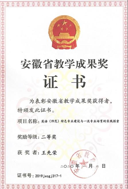 英语专业先后获批为国家级特色专业建设点(2010)、首批国家级一流专业建设点(2019),两次入选省级“卓越英语教师培养计划”项目建设,并于2021年顺利通过教育部师范类专业二级认证。在2022年员工会中国大学英语专业排行榜单中,英语专业位列全国并列第50名,在安徽省高校中与安徽大学、安徽师范大学并列第一;在安徽省外国语言文学类专业评估中,英语专业获A+等次,法语专业获B等次。商务英语专业获批为省级综合改革试点专业(2015),翻译专业获批为省级品牌专业(2017)。